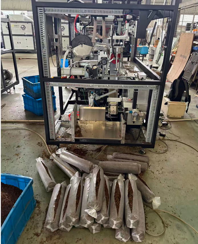 機器的主要功能是將混合、發酵好的蘑菇培養料(蘑菇土)自動、定量地裝入塑料袋中,為后續的滅菌、接種環節做準備。它是一個集輸送、計量、裝填、壓實于一體的自動化設備。